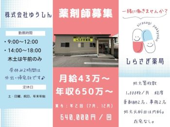 しらさぎ薬局、薬剤師募集【正社員】山口県岩国市、☆月給43...岩国市