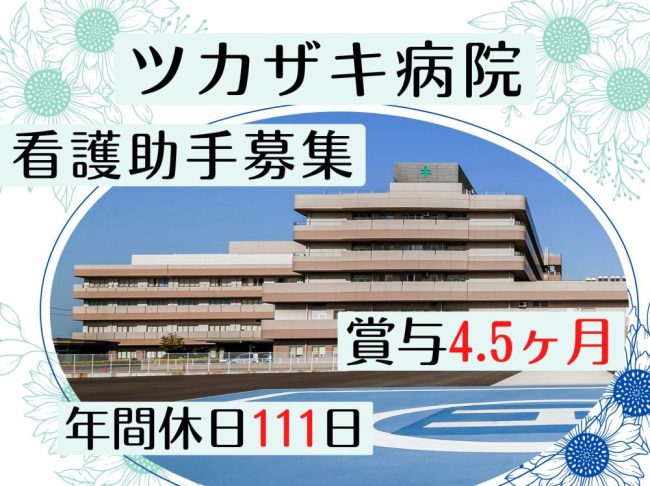 ツカザキ病院、(急性期一般病棟)の看護助手求人【正社員】姫路市、賞与4.5ヶ月分!!女性活躍中!