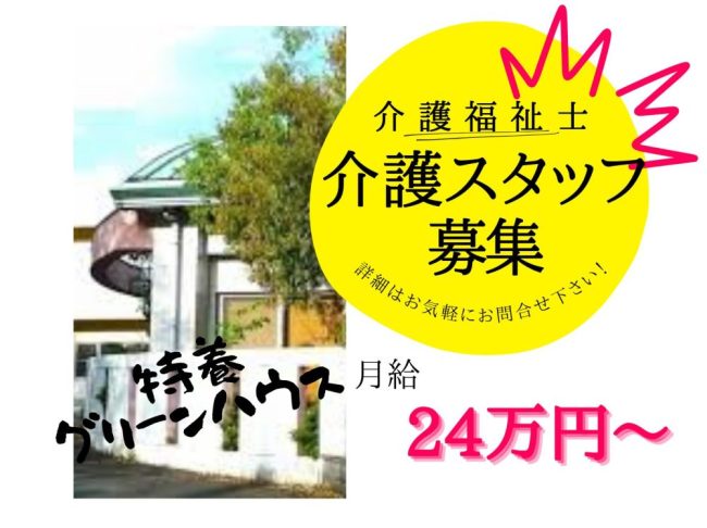 グリーンハウス、特養の介護職求人【正社員】【相生市】賞与4ヶ月分!!特養の介護福祉士募集中!!