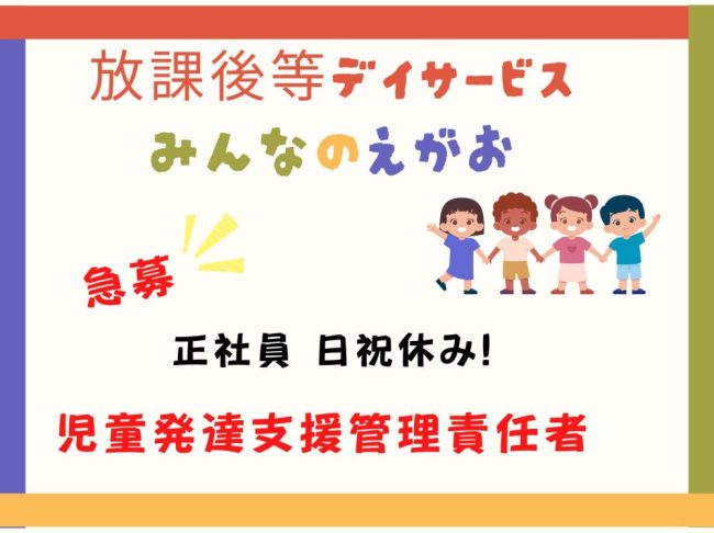 【正社員】【明石市】放課後デイ!!児童発達支援管理責任者 急募!