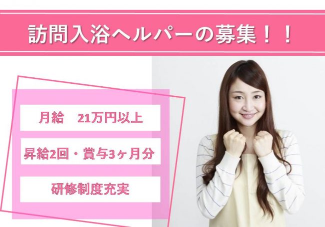 | 仕事内容 | 訪問入浴ヘルパー 訪問入浴は、オペレーター・ヘルパー・看護師の3名1チームとなり、入浴車で、お客様宅に伺ってサービス提供します。入浴機材の搬入、介助を行うお仕事です。介護の資格は不要!!介護に関心のある方ならどなたでも大歓迎です☆ |